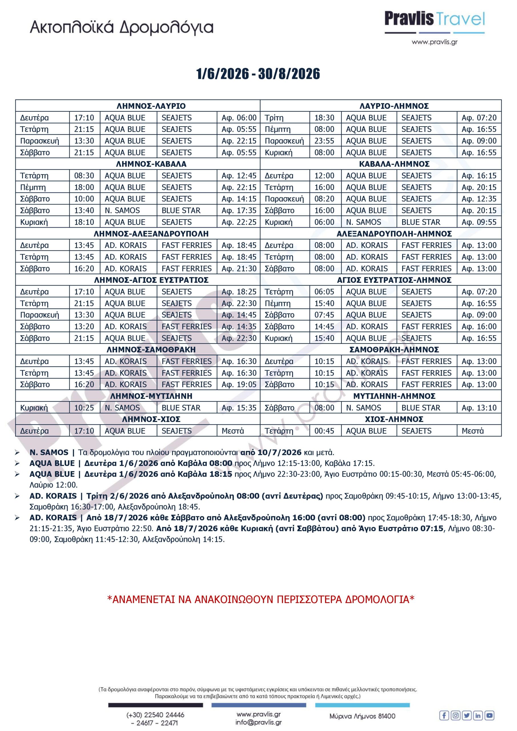 Ακτοπλοϊκά Δρομολόγια προς & από Λήμνο